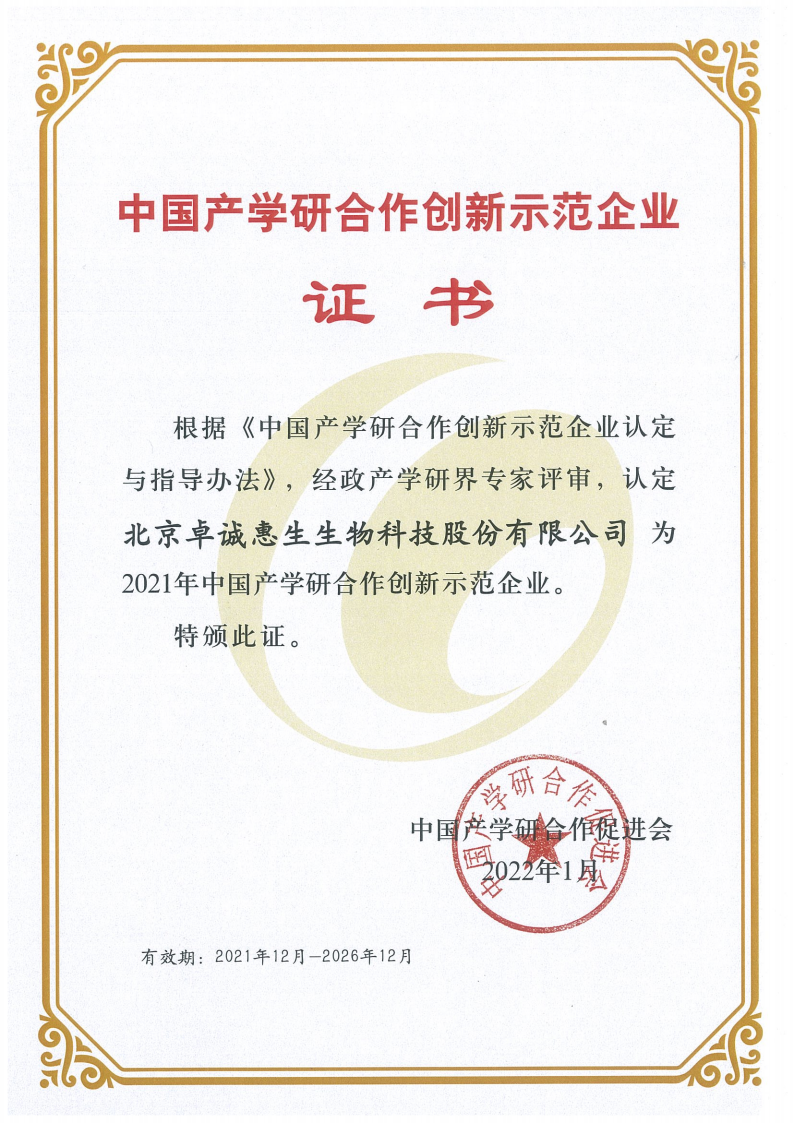 - 中國產(chǎn)學(xué)研合作創(chuàng)新示范企業(yè)